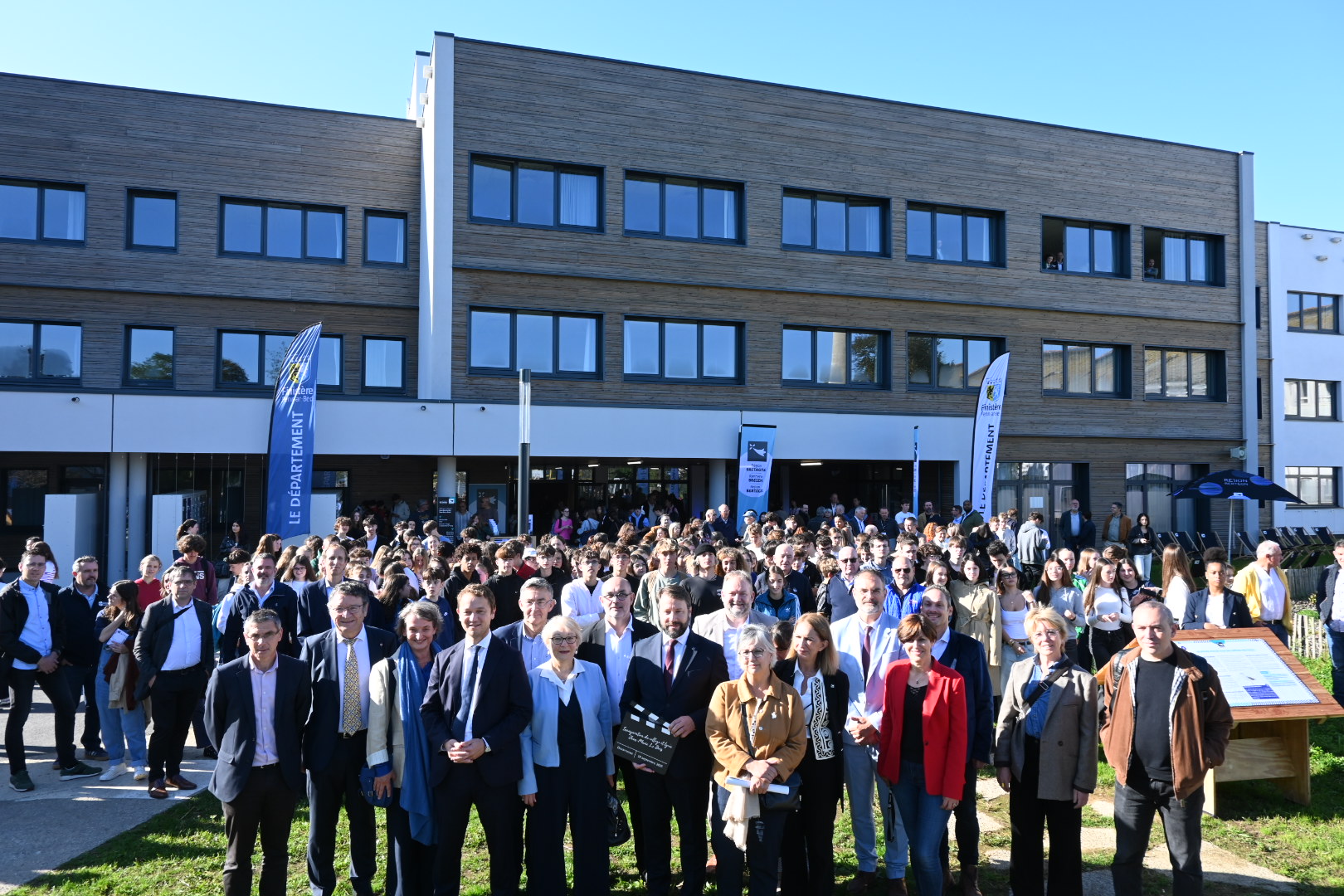 En présence des Présidents du Conseil Régional, du Conseil Départemental, de Mme le Maire et de Mme la Directrice Académique (SDEN 29), le bâtiment nouvellement livré accueillant les enseignements du lycée, les ateliers de la SEGPA, la restauration, la vie scolaire et les ateliers agents a été inauguré.